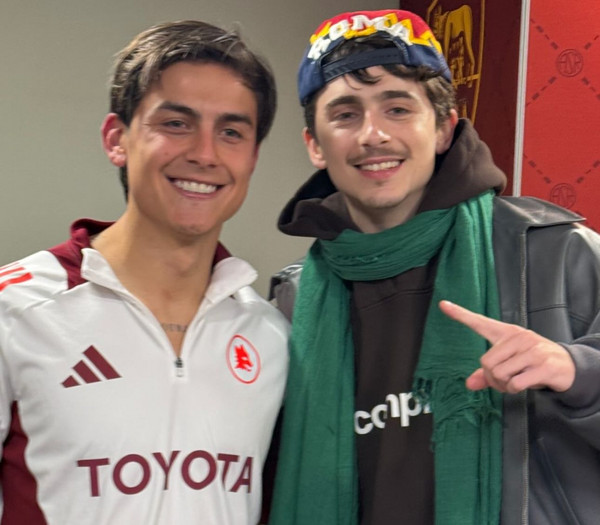 Ospite speciale allo Stadio Olimpico per Roma-Genoa, partita valida per la ventunesima giornata di Serie A e terminata con il punteggio di 3-1 in favore dei giallorossi. Ad assistere al match dalla tribuna era presente il noto attore Timothée Chalamet, il quale si trova nella Capitale per la presentazione del film "A Complete Unknown". Nelle scorse ore lo statunitense si è reso protagonista di un divertente siparietto a distanza con Francesco Totti (con la risposta del Capitano arrivata poco fa) e in serata ne ha approfittato per godersi la partita dei giallorossi. A fine gara Chalamet si è recato negli spogliatoi e ha scattato una foto con Paulo Dybala.