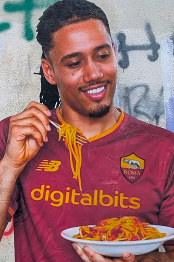 Un murale di Chris Smalling che mangia spaghetti vegani, a Testaccio. L'artista Adam Wynn ha pubblicato su Instagram un reel della sua nuova opera, con tanto di making of, nella quale ha ritratto l'ex difensore della Roma mentre mangia un piatto di spaghetti, vegan, come specificato dallo stesso artista.