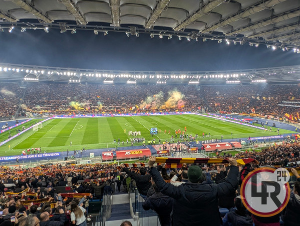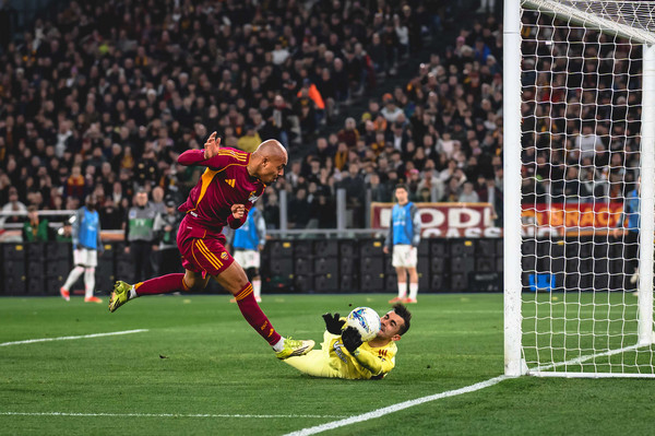 Allo Stadio Olimpico va in scena il delicatissimo scontro diretto tra Roma e Juventus, valido per la ventisettesima giornata di Serie A, e dopo i primi 45 minuti di gioco il risultato è di 1-0 in favore dei padroni di casa. La Roma parte fortissimo e sfiora il vantaggio al minuto 2: potente tiro di Pisilli, Perin non trattiene e Pellegrini calcia clamorosamente alto dall’interno dell’area piccola. Poco dopo i giallorossi corrono un doppio brivido, ma prima Rensch interrompe la ripartenza bianconera con un intervento fondamentale e successivamente Yildiz calcia alto da ottima posizione in seguito a un errore di Cristante. Al 24’ la Roma si rende nuovamente pericolosa e va vicina all’1-0 con Malen, ma Perin compie un grande intervento con la faccia in uscita bassa e manda il pallone in angolo. La risposta della Juventus non si fa attendere ed è affidata a McKennie, ma il suo colpo di testa esce per pochi centimetri. Successivamente ci prova Cristante, ma la sua incornata termina sopra la traversa. L’equilibrio si spezza al minuto 39 grazie a una magnifica pennellata di Wesley, il quale calcia di destro a giro e insacca la palla sotto l’incrocio dei pali. Termina così il primo tempo sull'1-0 per la Roma. Nella ripresa parte subito forte la Juventus, che la riapre con un gran gol di Conceicao. La rete sembra svegliare i bianconeri, ma la zampata di Ndicka sugli sviluppi di un corner giocato corto riporta i giallorossi avanti. Il 3-1 arriva poco dopo, con Malen, lanciato da Konè, beffa Perin con un tocco sotto a tu per tu. La beffa per la squadra di Gasperini arriva nel finale, quando Gatti pareggia dagli sviluppi di un calcio di punizione laterale. Finisce 3.3, Ecco i migliori scatti della prima frazione di gioco.