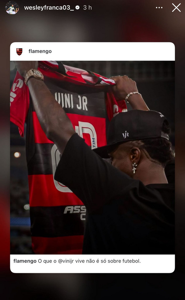 Instagram, Wesley al fianco di Vinicius: il terzino condivide il messaggio del Flamengo (FOTO)